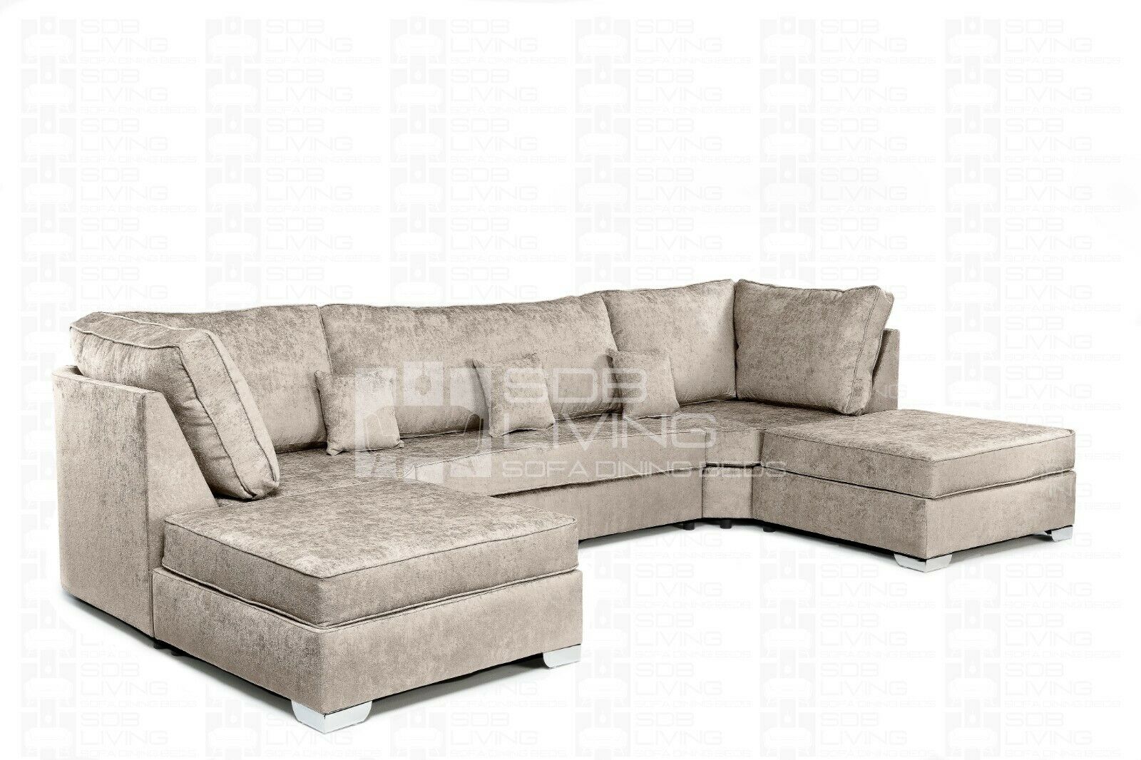 Bringing you our best-selling U shape sofa! The U shape stands out from the rest, this suite is perfect for larger homes and big family gatherings. Our interchangeable, modern U shape is upholstered in a premium fabric providing a stylish yet cosy look. This sofa comes in 5 pieces and can be transformed into a 4-seater or an L shape and has different detachable features such as seat cushions and 2 large footstools. Fitted with 10 scatter or 5 fullback cushions.